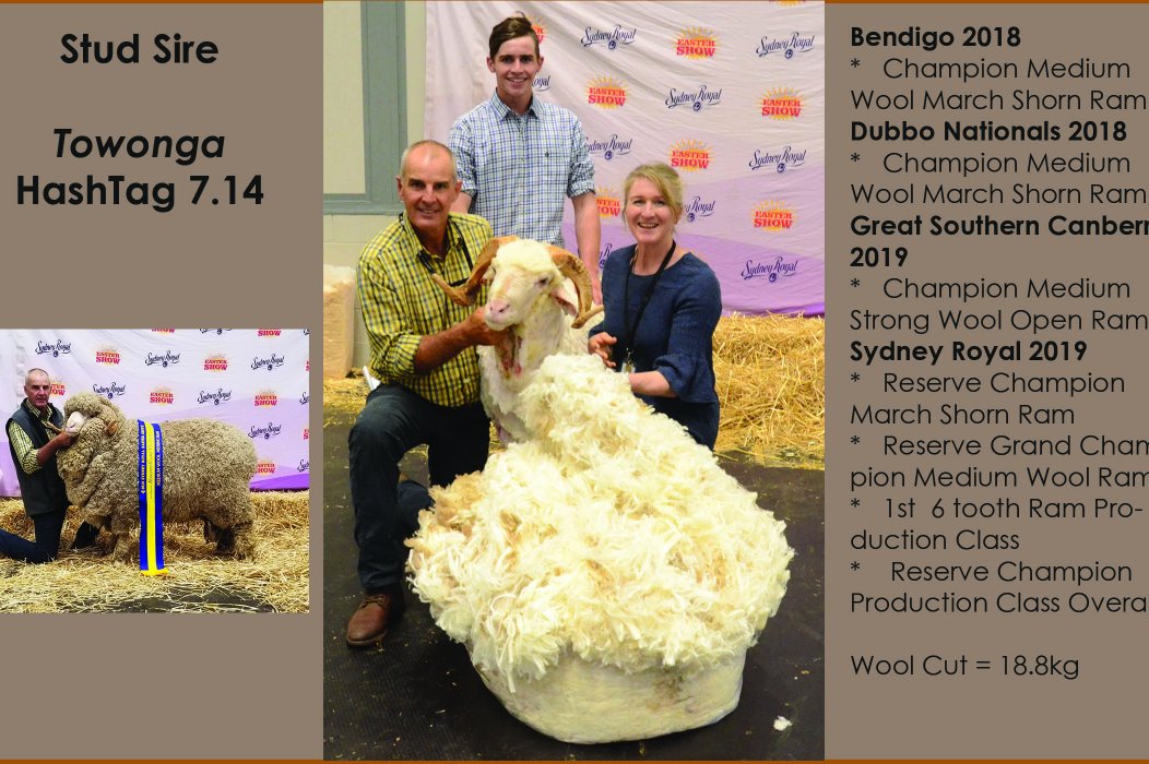 The Dam of this ram was a Champion Strong Wool Ewe and was sold to Indalo Stud Argentina. She was a Tow Calendar daughter.